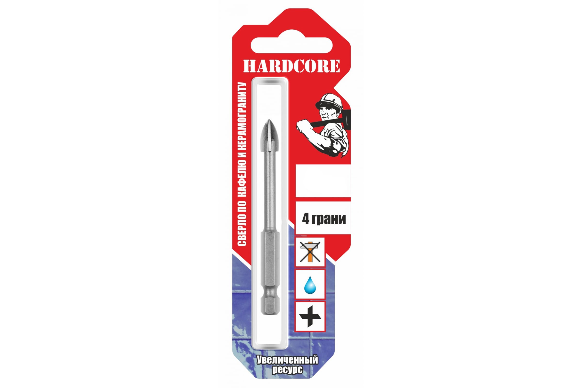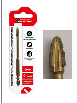 Сверло по керамограниту и керам.плитке 6мм Hardcore 4 грани (151006)