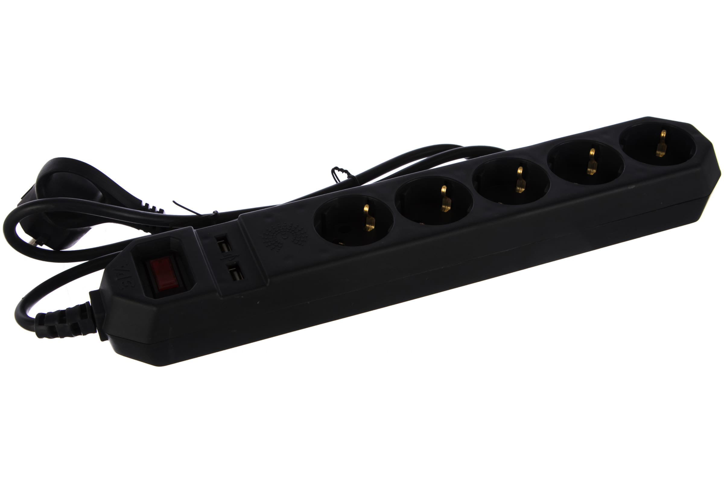 Удлинитель 1,5м 5роз. с сет.фильтром с/з с выкл. 2хUSB 10А ЭРА (черн.) (Б0019036)