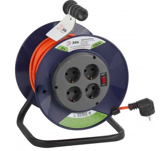 Удлинитель 20м 4роз. ПВС 3*1 на пласт. катушке с заземл. ЭРА У1-43039/43054 в Нефтеюганске